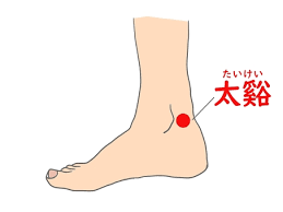 場所:内くるぶしとアキレス腱のあいだのくぼみ。