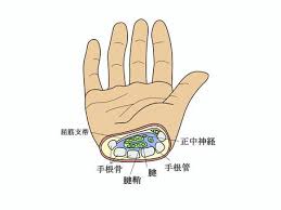 手根管とは手首にあり、手根骨(舟状骨、豆状骨、大菱形骨、有鈎骨)と横手根靭帯(屈筋支帯)により形成されたトンネルで、正中神経、深指屈筋、浅指屈筋、橈側手根屈筋、長母指屈筋が通ります。