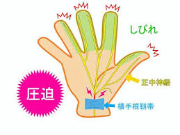 しびれが出現したり強くなった場合は手根管症候群が疑われます。