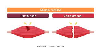 筋肉が断裂した時に「ブチッ」と音が聞こえることもあります。