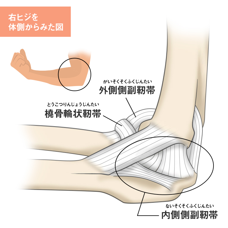 上腕骨から尺骨にかけて伸びる靱帯。