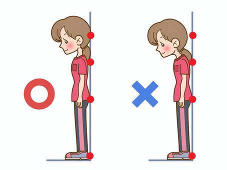 壁にかかと、背中をつけ頭が壁につくかどうかで見分けます。
